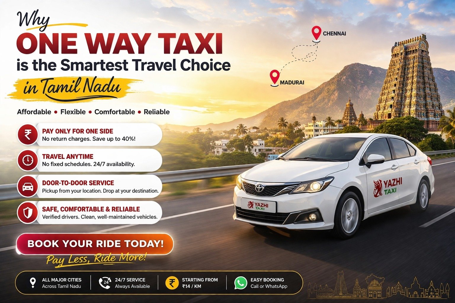 One Way Taxi in Tamil Nadu – Affordable, Comfortable & Hassle-Free Travel Complete Guide to Outstation Cab Travel in Tamil Nadu April 1, 2026 Traveling between cities in Tamil Nadu has become... Read More